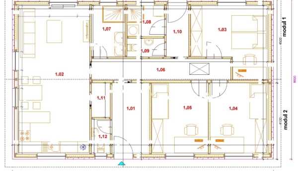 Das Haus können wir nach Ihren Wünschen und Bedürfnissen anpassen. Die Module können auch zu L-, U-Formen oder mehreren Etagen kombiniert werden. Lassen Sie sich auch in unserer Referenzgalerie inspirieren.