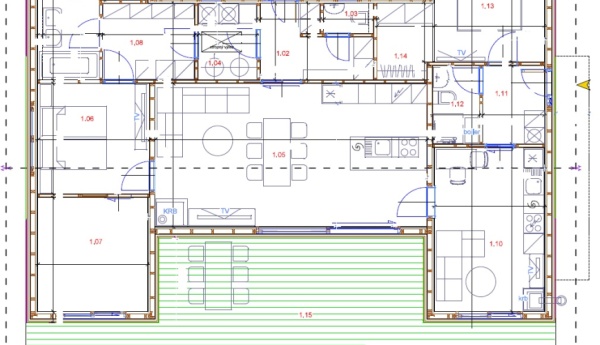 - Dachtyp: Satteldach mit Stauraum und Überhang, Außenterrasse, HS-Portaltür